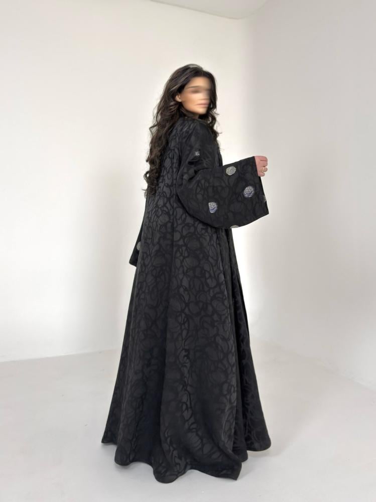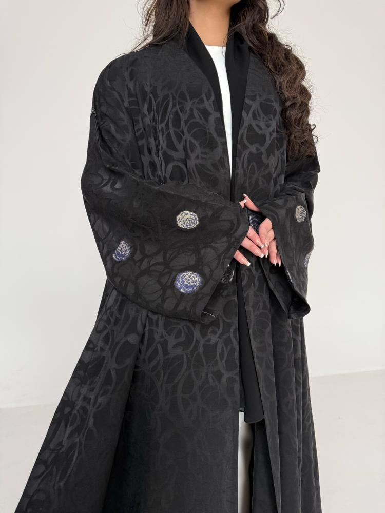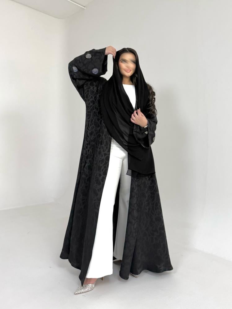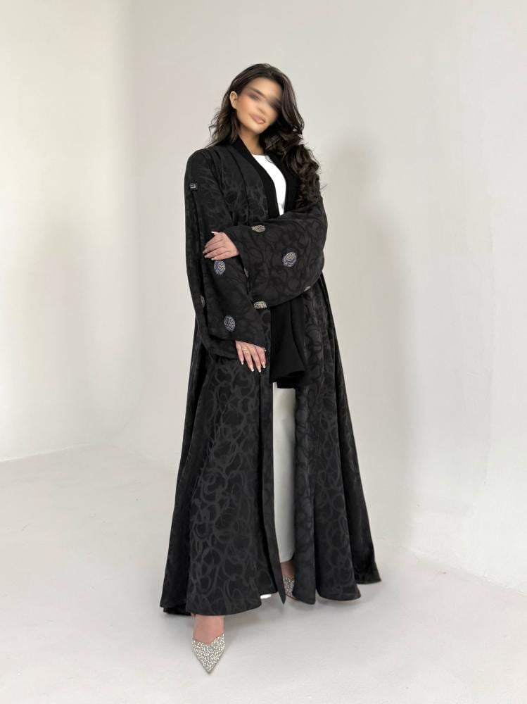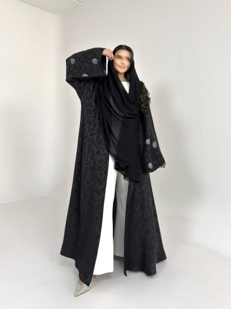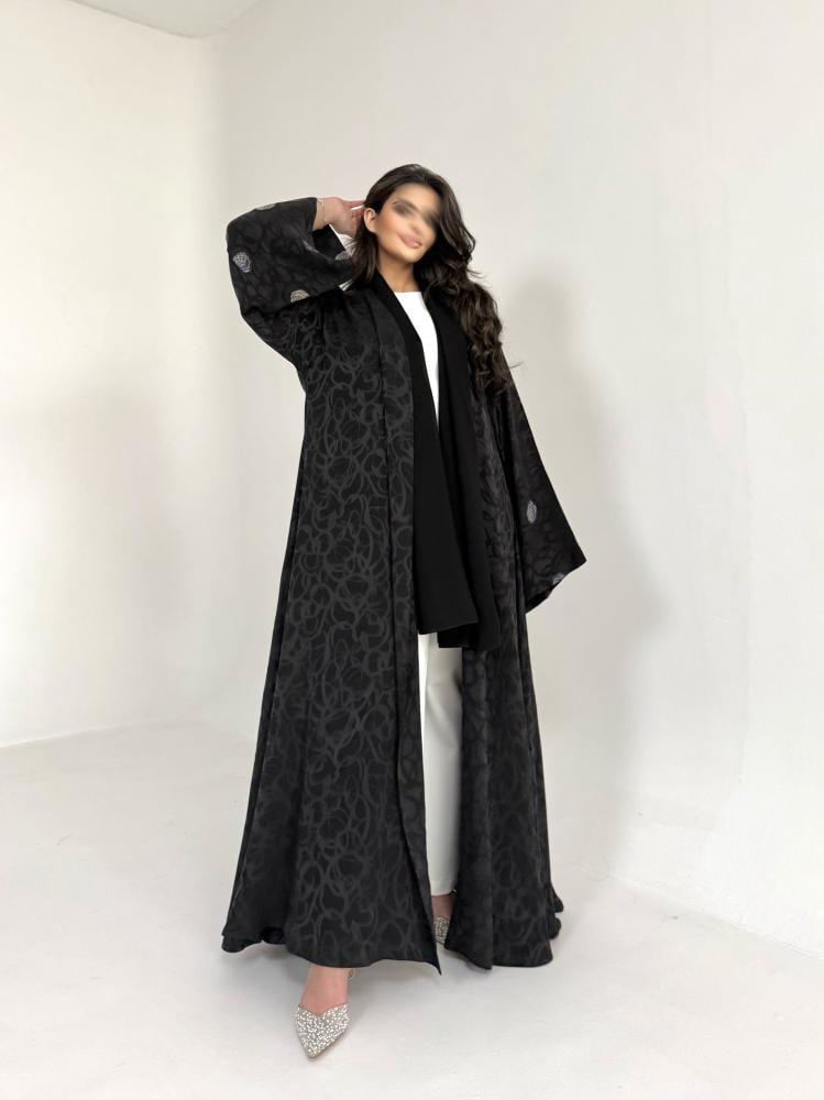 عباية جاكار تركي اسود مع اكمام جاكار مقصب