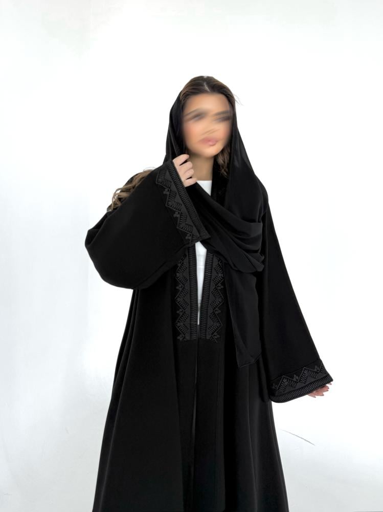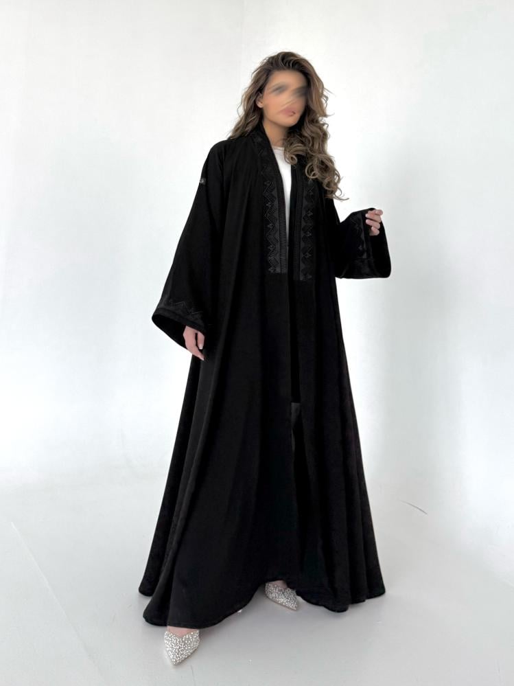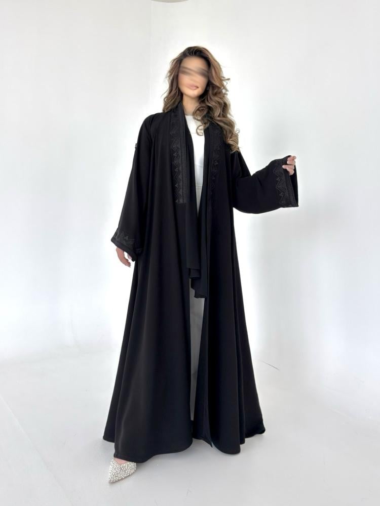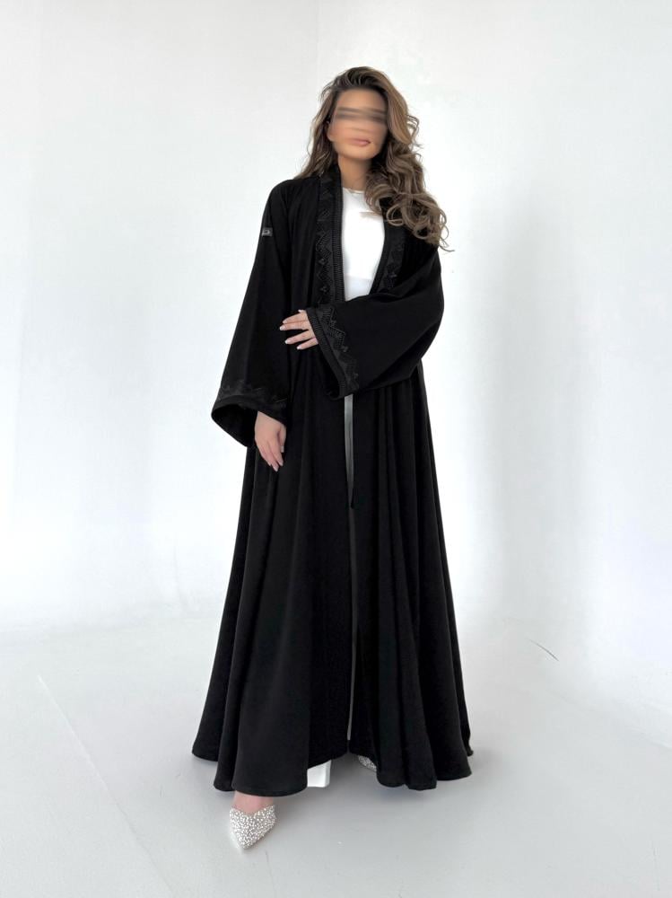 عباية كريب اسود مطرز
