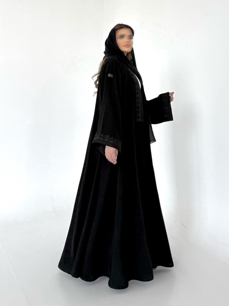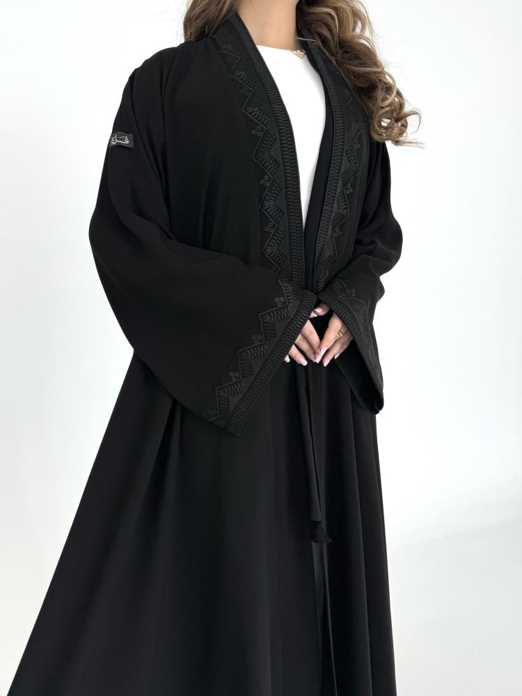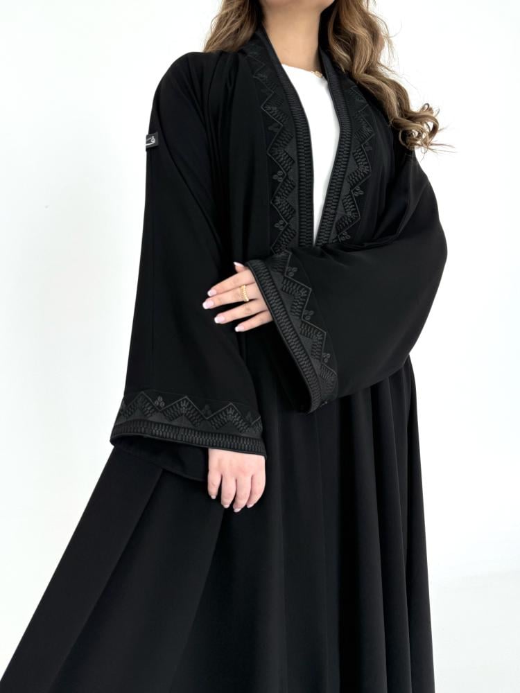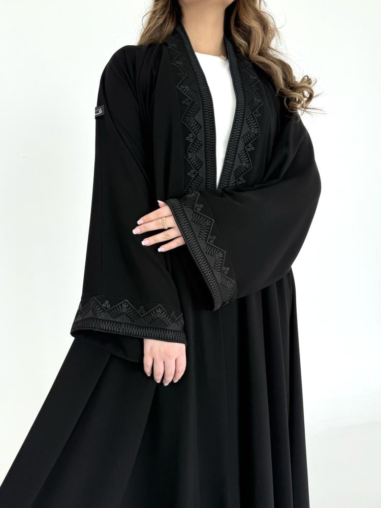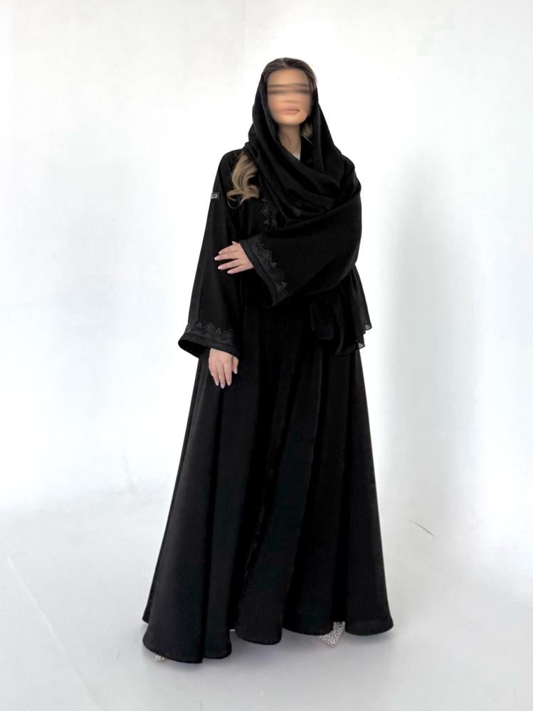عباية كريب اسود مطرز