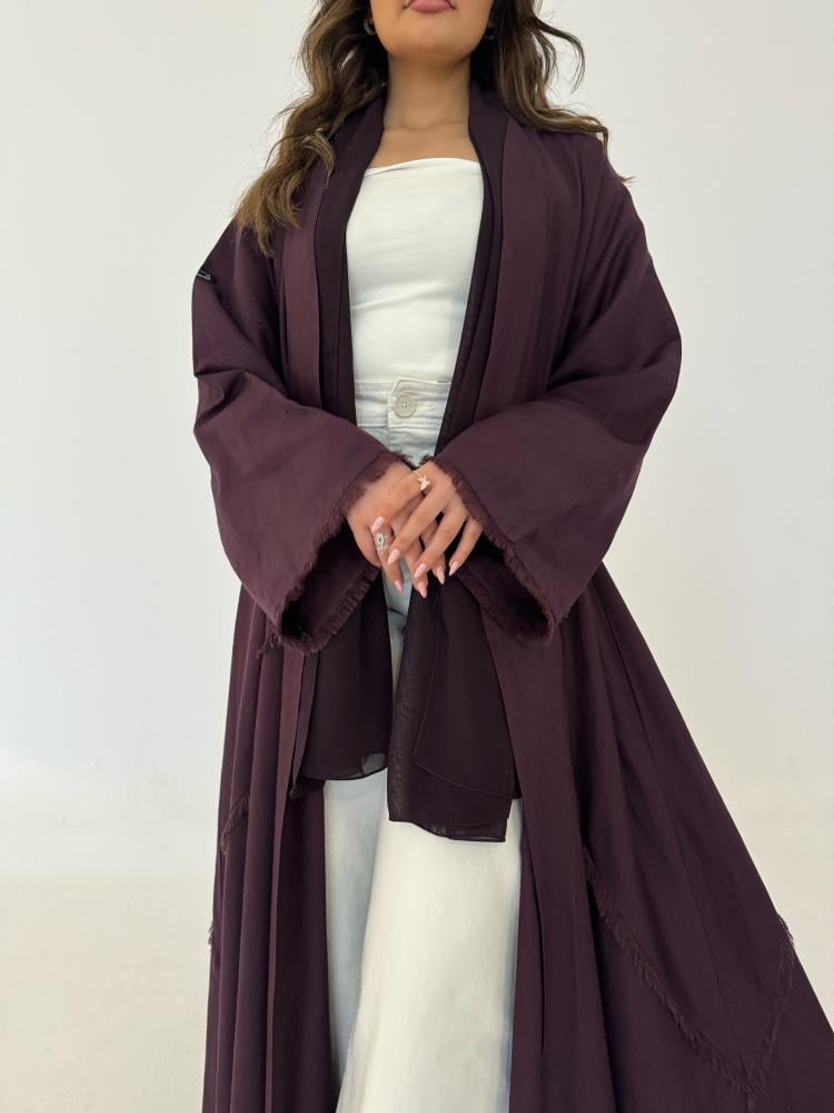 عباية لنن طبيعي بنفسجي قصة كلوش